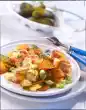 Wash the tomato, quarter it, remove the seeds and cut into small cubes. Sprinkle over the pan and serve garnished with parsley as desired.
