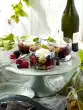 In the meantime, roughly chop the hazelnuts. Caramelise in a pan with 1 teaspoon sugar. Place on a baking tray lined with baking paper and let it cool down. Mix sour cream, mascarpone, vanilla pulp and 1 tbsp. sugar. Fold the tarte flambée dough over half lengthwise. Roll out oval (20 x 30 cm) on the floured work surface and place on a baking tray lined with baking paper. Spread the sour cream evenly on the dough. Spread gooseberries on the cream. Bake in a preheated oven (electric cooker: 200 °C/ convection oven: 175 °C/ gas: see manufacturer) for 10-15 minutes