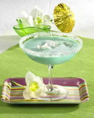 Put lemon juice and grated coconut on 2 plates. Dip the rim of the glass first in lemon juice, then in grated coconut and leave to dry. Shake rum, vodka, Blue Curaçao, pineapple juice and coconut cream with crushed ice in a shaker. Pour the cocktail through a sieve into the prepared glass. Serve immediately decorated with coconut flakes