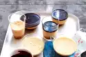 For the choux pastry, boil milk, 1⁄8 l water, 1 pinch of salt and butter in a pot while stirring. Add the flour at once and stir until the dough comes off the bottom of the pot as a lump.