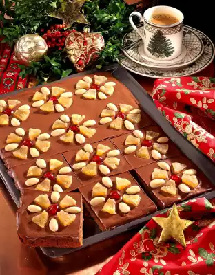 Finely chop the candied lemon peel. Mix flour, baking powder and cocoa. Knead into the syrup mixture together with the candied lemon peel. Finally, fold in the eggs. Spread the dough on a greased baking tray (38 x 28 cm) and bake in a preheated oven (electric range: 175 °C/ gas: level 2) for 25-30 minutes.