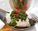 Roughly chop the eggs. Add the corn, radishes and cucumber to the noodles. Leave to stand for at least 1 hour. Halve bacon slices and mix in. Season salad to taste.