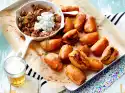Remove from the oven and let it cool down briefly. Remove the baskets from the trays. Just before serving, heat up the chilli and fill into the baskets. Garnish each basket with 1 tsp. crème fraîche, diced peppers and coriander.