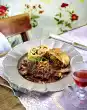 1 Peel and chop the onion, chop 2 cloves of garlic. Brown them in an oiled frying pan, add the minced beef and the spices. Mix and cook for 15 minutes over low heat. Salt and pepper with Tabasco.