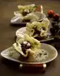 Season to taste with salt, pepper, cayenne, chilli and paprika. Clean and wash spring onions and cut them into pieces of about 12 cm. Briefly sauté in a little boiling salted water and drain. Bake the tacos briefly in a hot oven.