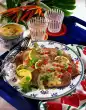 Sprinkle horseradish curls over the meat and garnish with apple wedges and lemon balm. Add remaining sauce and roast potatoes extra.