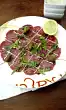 Cut the fillet with a sharp meat knife into nice, not too thick slices. Place the fillet fan-shaped on the salad. Season with sea salt and pepper. Sprinkle with pine nuts and parmesan.