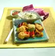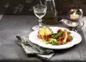 Drain the mozzarella and cut into slices. Wash the salmon, dab dry and cut into pieces. Sprinkle with rest of lemon juice and salt