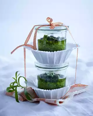 Divide the pesto into 4 glasses and pour some olive oil on top. Close well and store in a cool place