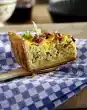 In the meantime, process the remaining dough and topping in the same way. Bake the tarte flambée one after the other. Serve the finished tarte flambée with bacon warm.