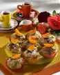 Whip the cream with the whisks of the hand mixer until stiff and fold into the cream. Fill bowls with cream and one large mango cube each. Place cut-out cups on top. Chill for at least 3 hours. Turn out the tartufo. Warm up the jam and spread the tartufo and sprinkle with grated coconut. Decorate with remaining mango