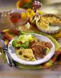Heat a pan or roasting pan and fry the meat in it in portions for about 4 minutes. Season with salt. Remove the meat and fry the vegetables in the frying fat for approx. 5 minutes, turning them over. Deglaze with wine, bring to the boil and loosen the frying set. Add cream and 400 ml broth, bring to the boil and simmer for about 3 minutes. Stir 100 ml stock and flour until smooth, thicken sauce with it and simmer for about 2 minutes. Add vegetables and meat to the sauce and heat up briefly. Season to taste with salt and pepper