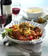 Wash the meat, dab dry and cut into slices. Dice bacon. Wash lemon hot, grate dry and grate peel thinly. Halve fruit and squeeze juice. For the marinade, mix lemon juice and zest, pepper, bay leaf and oil. Mix meat, bacon and marinade and chill for about 1 hour