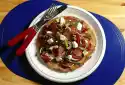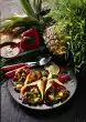 Season with salt and pepper. Heat the oil. Fry fillet strips in it, salt a little. Add vegetables, fry briefly. Fold in parsley and season with dried chili. Pour whisked egg over it and let it set.