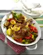 Peel and finely chop the garlic. Wash the meat, dab dry and cut into strips. Clean and wash bell peppers, carrots, spring onions and chilli. Cut the bell peppers into cubes, carrots into slices, spring onions into pieces and chillies into rings. Put rice in 500 ml boiling salted water, bring to the boil, cover and let it swell at low heat for about 15 minutes. In the meantime heat oil in a large pan. Add the meat and fry well while turning.