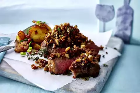 Remove and place in a flat casserole dish. Spread the mushroom mixture on top. Roast in a hot oven for about 20 minutes.