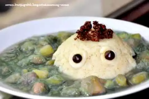 At the very end she adds the food colouring to make the lake really, really disgusting blue-green.