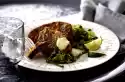 Put the lukewarm potato salad on the plates and place 1 cutlet on each plate. Garnish each cutlet with 1 slice of lemon, on which an anchovy ring filled with capers is placed, and with lemon wedges.