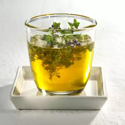Wash the lavender and carefully dab dry. Thyme wash, dab dry. Cut off hard ends at the bottom. Cut thyme stalks in half or even in thirds. Put thyme and lavender in a glass. Fill up with honey, cover and leave to stand for about 1 week