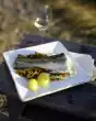 Cut the shrimps lengthwise at the back and remove the intestines. Rinse shrimps and pat dry. Mix starch, salt and pepper on a flat plate.