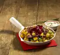 Halve bacon strips and add after about 10 minutes. Add bell peppers, carrots and thyme after 4-5 minutes. Season with salt and pepper. Mix vegetables well. Add zucchini and spring onions and cook for the last 3-4 minutes. Season again with salt and pepper if necessary. Serve with the dip