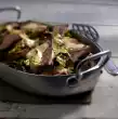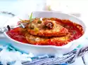 Halve the olives. Take out the bacon and let it drip off. Put eggs in the pan and let them fry carefully, seasoning with salt and pepper. Halve the ham. Spread 4 slices of bread with tomato sauce and place on a baking tray lined with baking paper.