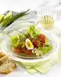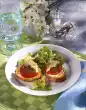 Roast the toasts until golden brown and cut in half diagonally. Spread a little remoulade on each one and cover with 1 slice of pork loin. Place peach halves on top and sprinkle with cheese. Bake in a preheated oven (electric: 200 °C/ gas: level 3) for approx. 5 minutes. Add 1 teaspoon of cranberries to each slice. Serve garnished with salad and parsley