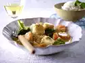 Heat the oil in a large pan with a lid. Sauté the onions and peppers for about 5 minutes. Fry the tomatoes for 2 minutes. Season with salt and pepper.