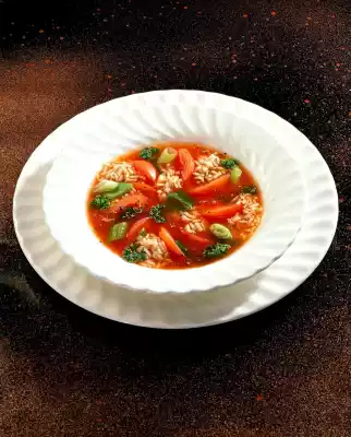 Let simmer for about 8 minutes. Season with salt and coarse pepper. Drain rice and add to the soup. Wash, dry and chop parsley. Arrange the soup on plates and garnish with parsley