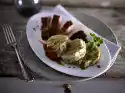 In the meantime peel the onions and cut them into thin strips. Wash the herbs and shake dry. Chop rosemary finely. Wash and halve the tomatoes. Mix goat cheese, 1 egg and 1 egg white. Season with salt and pepper.