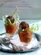 Wash the mint and chop finely, except for a little to garnish. Stir into the yoghurt. Peel the garlic and press it directly into the yoghurt using a garlic press. Season to taste with salt, pepper and lemon juice