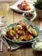 Fry the onion in hot oil until transparent. Sweat tomato paste with. Drop wet spinach and let it collapse. Stir in about 1/8 l water. Stir in tomatoes, almonds and olives. Season with thyme, except a little bit, salt, pepper, sugar and paprika. Simmer everything for about 5 minutes