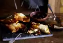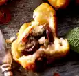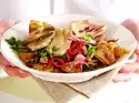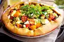 Spread the cream cheese in the middle of the slices of dough. Spread the tomatoes on top. Sprinkle with rosemary and pine nuts. Drizzle 2 tablespoons of oil over it. Whisk the egg yolks and 1 tablespoon of water. Brush the edges of the dough with it.