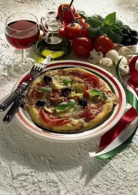 5 minutes before the end of the cooking time, add the salmon ham and drained olives. Serve to taste, garnished with basil leaves and sprinkled with coarse pepper. Makes 4 pizzas.