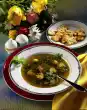 Season to taste with orange juice. Whip cream until semi-stiff. Arrange the soup in plates, put a blob of cream on each, sprinkle with the almonds and garnish with the parsley leaves.