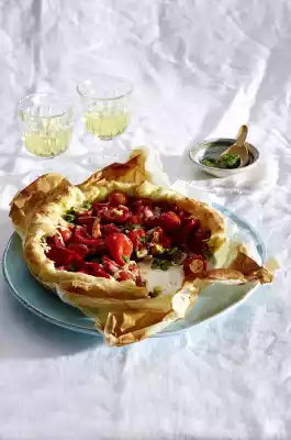 Drain the peppers well. Wash the tomatoes and also drain them. Spread both in the mould and sprinkle with the remaining cheese. Bake on the lower shelf in a preheated oven (electric cooker: 200 °C/ convection oven: 175 °C/ gas: see manufacturer) for approx. 25 minutes. Remove from the oven and let rest for about 5 minutes. Remove from the mould and serve