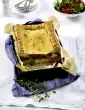 Stir cream cheese with egg and 1 heaped tablespoon pesto until smooth. Season with salt and pepper. Roll out the puff pastry. Cut off approx. 6 cm from the narrow side of the dough, place it on the long side and press it down firmly so that it almost forms a square. Put the puff pastry with the baking paper in a tart tin (bottom approx. 19 cm Ø, top approx. 24 cm Ø). Press the dough with your hands at the edge, making it slightly wavy. Spread about 2 tbsp. of the pesto on the bottom. Wash the salmon, dab dry. Cut into thin slices