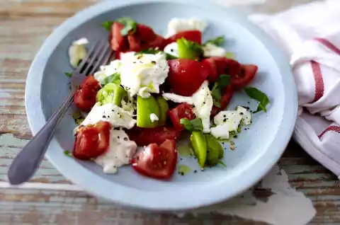 Tomato with mozzarella, burrata, basil and olive oil