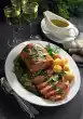 Bake in the preheated oven (electric oven: 200 °C/ gas: level 3) for about 45 minutes. Clean, wash and slice the tomatoes and courgettes. After 20 minutes spread on the potatoes, season and continue baking.