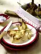 Clean and wash the remaining zucchini and fennel. Cut into very small cubes with the flesh removed. Peel and dice the onions. Heat 2 tablespoons of oil in a frying pan. Fry the onions in it until transparent. Add the diced vegetables and cook for about 10 minutes, stirring occasionally. Season with salt and pepper. Wash basil, shake dry. Pluck the leaves from the stalks and chop them, except for a little bit for garnishing