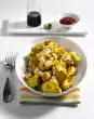 Wash and chop the herbs. Mix with crème fraîche. Roast the seeds until golden brown. Flavour vegetables again. Sprinkle with seeds. Add the crème fraiche