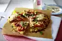 Bake in a hot oven for 20-25 minutes. Remove the pizza ring and sprinkle with oil. Crème fraîche tastes good with it.