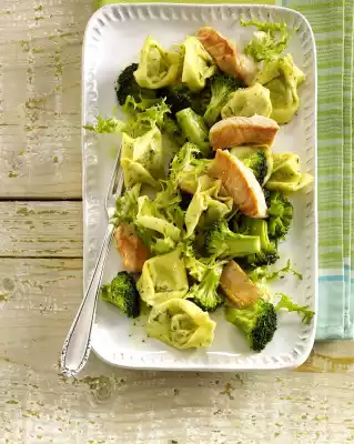Clean the broccoli, divide into small florets and wash. Put broccoli in boiling salted water, cook for 6-8 minutes and remove. Leave tortellini to stand in boiling salted water for about 1 minute, pour onto a sieve and drain.