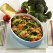 Cut the ham into cubes. Fill into a flat greased casserole dish (approx. 20 x 30 cm) with tortellini, mushrooms, peas and sauce. Grate cheese over it. Bake in a preheated oven (electric cooker: 175 °C/ convection oven: 150 °C / gas: level 2) for approx. 1 hour