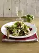 Mix ricotta and crème fraîche. Season with salt and pepper. Wash the basil, shake dry and remove the leaves. Mix ricotta cream and basil into the salad. Flavour again and serve.
