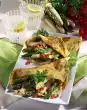 In einer großen Pfanne bei mittlerer Hitze 1 Minute Toasttortillas rösten, einmal wenden, bis sie leicht gebräunt sind. Beiseite stellen. Zucchini in 2 Esslöffeln Öl 3 Min. kochen, ab und zu umrühren, bis sie weich sind. Nach Wunsch mit Salz und gemahlenem schwarzen Pfeffer würzen. Die Mischung in eine große Schüssel geben. Tomaten unterrühren. Pfanne wieder erhitzen.