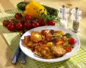 Peel, wash and slice the potatoes. Heat oil in a coated pan. Fry the potato slices for about 15 minutes at medium heat, turning them from time to time.