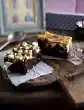 Place 2 slices of toast on top of each other, cover with 1 uncoated slice of toast each. Fix each sandwich diagonally at 4 corners with wooden skewers. Cut the edges of the sandwiches, quarter the sandwiches and arrange them. Arrange remaining cream in the leaf trays, add