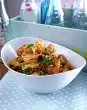 Cook the pasta according to the instructions on the packet (approx. 8 minutes). Drain, drain and arrange on plates with the sauce. Garnish with remaining oregano.