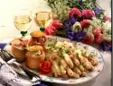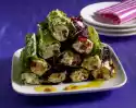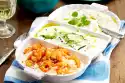 Roast nut flakes in a pan without fat until golden brown, let them cool down. Wash, clean and slice the tomato. Clean and wash spring onion and cut into rings. Cut the fillet into small pieces.